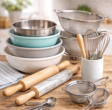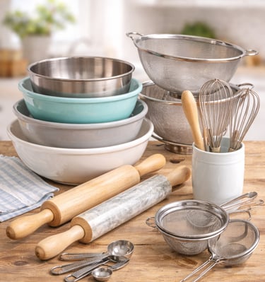 En esta sección encontrarás todo lo relacionado con moldes, tazones, batidores de globo, rodillos, miserables, mangas pasteleras y más.